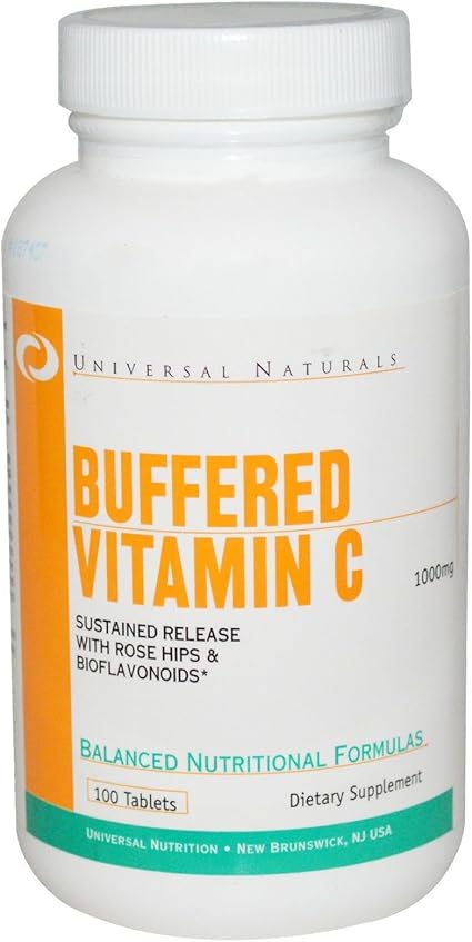 Universal nutrition vitamin c buffered. Vitamin c is a water soluble nutrient well known for its vital role in the immune health and is a highly effective antioxidant that can protect the body s cells. Sustained release with rose hips bioflavonoids. Vitamin c buffered 1000 mg 100 tabs.